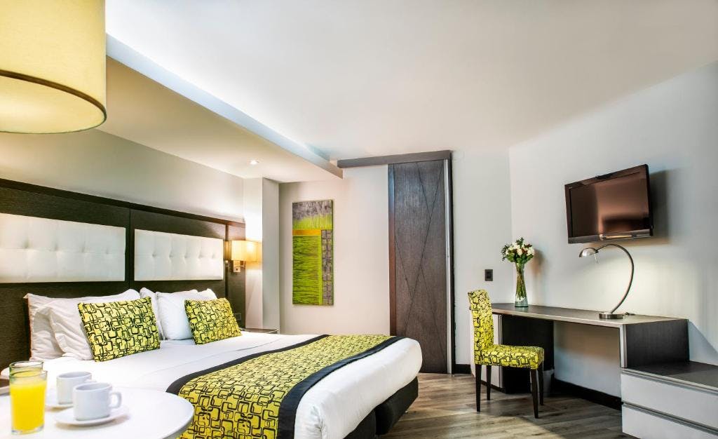Confortables habitaciones de 35mt2, con cama king size, ropa de cama de algodón, baño privado con agua caliente, secador de pelo, espejo facial, amenities, TV de pantalla plana, armario, caja fuerte y conexión wi fi ilimitada.